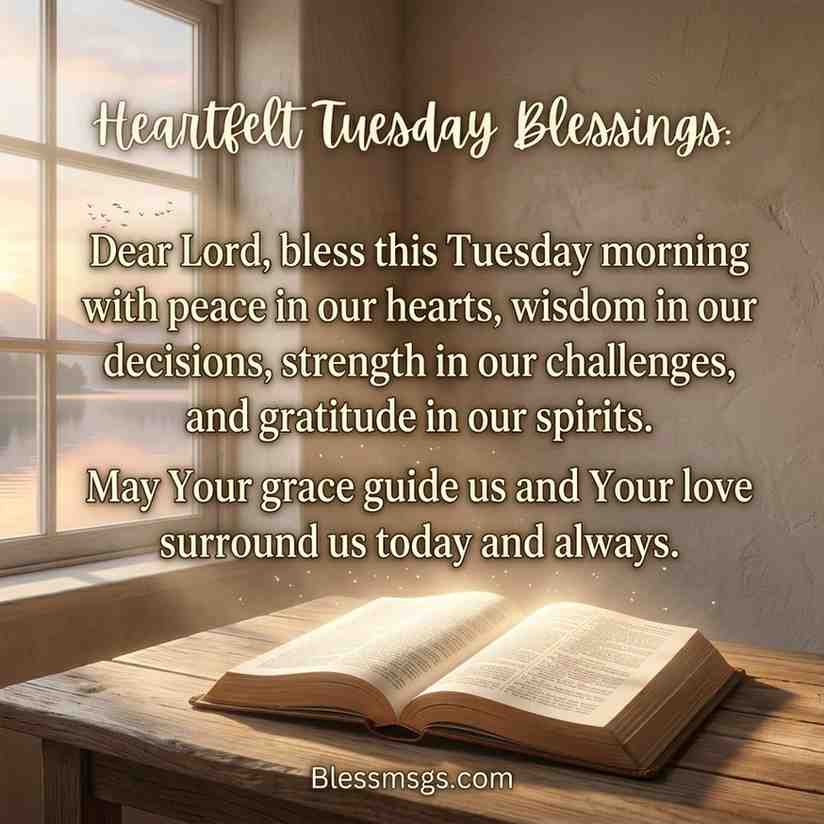 These prayers focus on spiritual guidance, protection, and heartfelt blessings to start Tuesday with faith.
