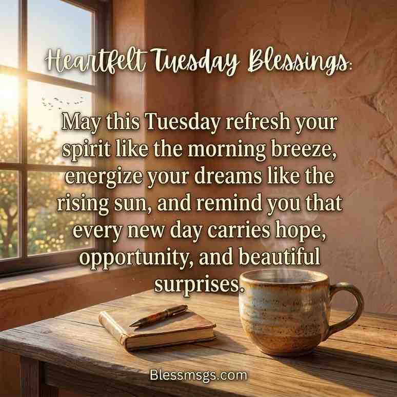 Mornings set the tone for the entire day. These blessings are perfect for a fresh start, filling your Tuesday morning with energy, hope, and positivity.