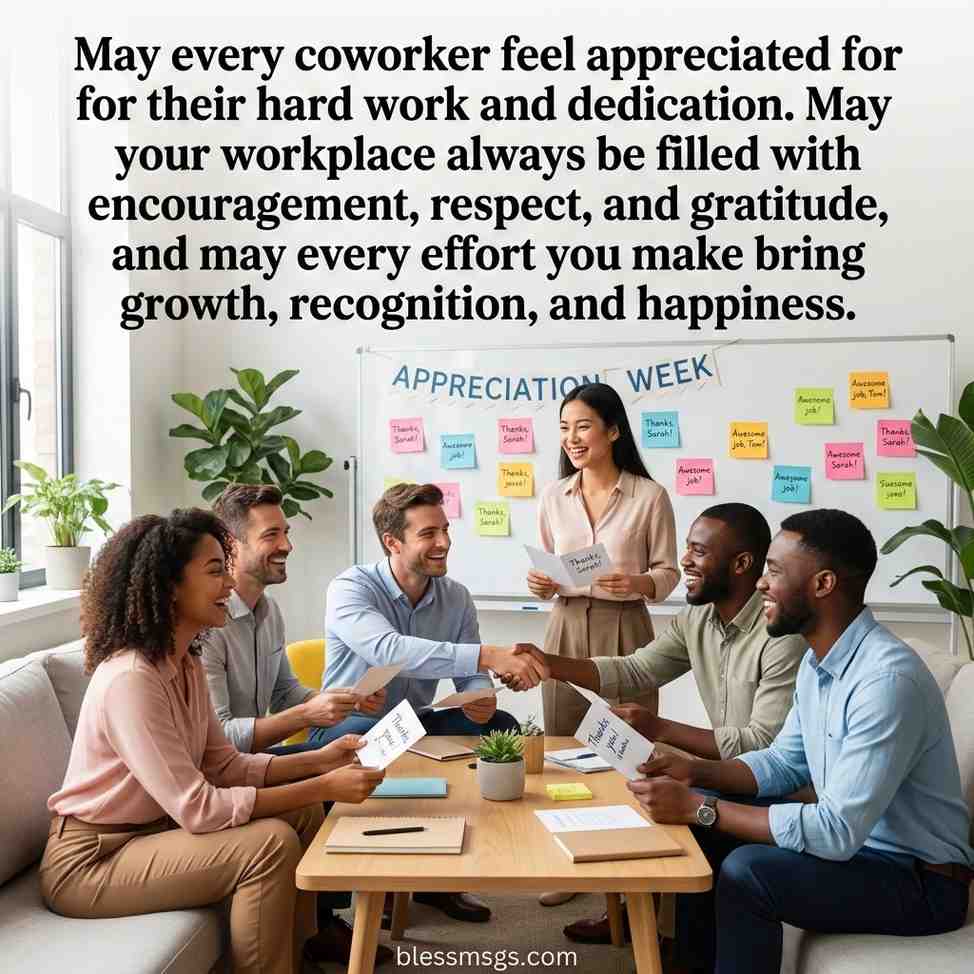 Showing appreciation through messages is a simple yet powerful way to make your coworkers feel valued. Thoughtful words, blessings, and encouragement strengthen morale, foster collaboration, and show that their efforts are recognized. Below are practical examples you can use to express genuine appreciation.