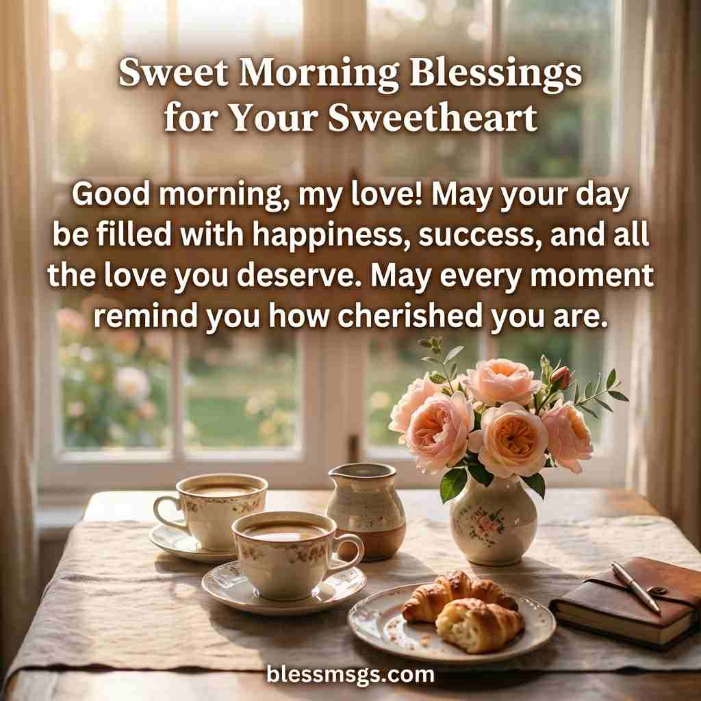 A morning message can set the tone for the whole day. Sweet morning blessings are not just greetings—they are expressions of love that can brighten your sweetheart’s day instantly.