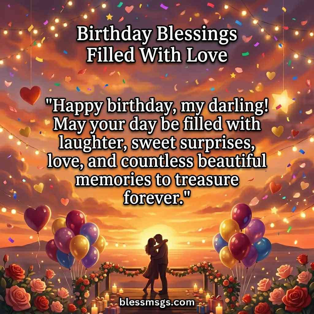🔵 Darling, may your life always be filled with joy, love, and laughter. I pray that no challenge ever dims your spirit and that you always feel supported, appreciated, and cherished. You are my heart, my happiness, and my greatest blessing. May our love story continue to blossom beautifully, filling every day with warmth and unforgettable moments.