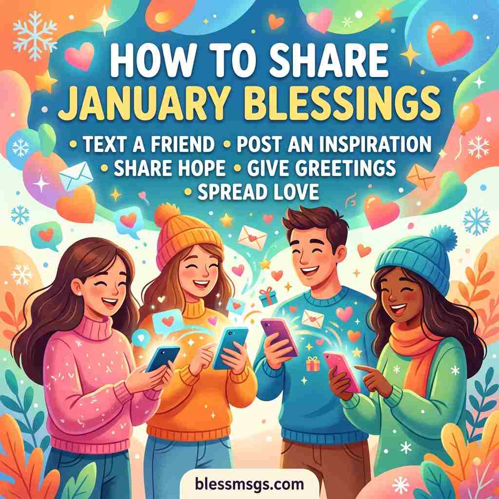 You can share January blessings through social media posts, WhatsApp messages, greeting cards, emails, or even in person. Simple and kind words can make a big difference.