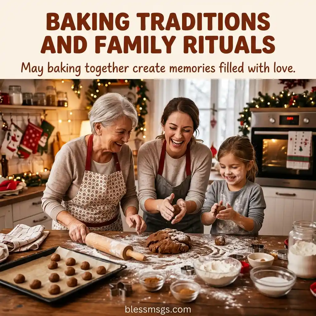 Common rituals include cookie decorating, holiday baking nights, and sharing recipes with loved ones.