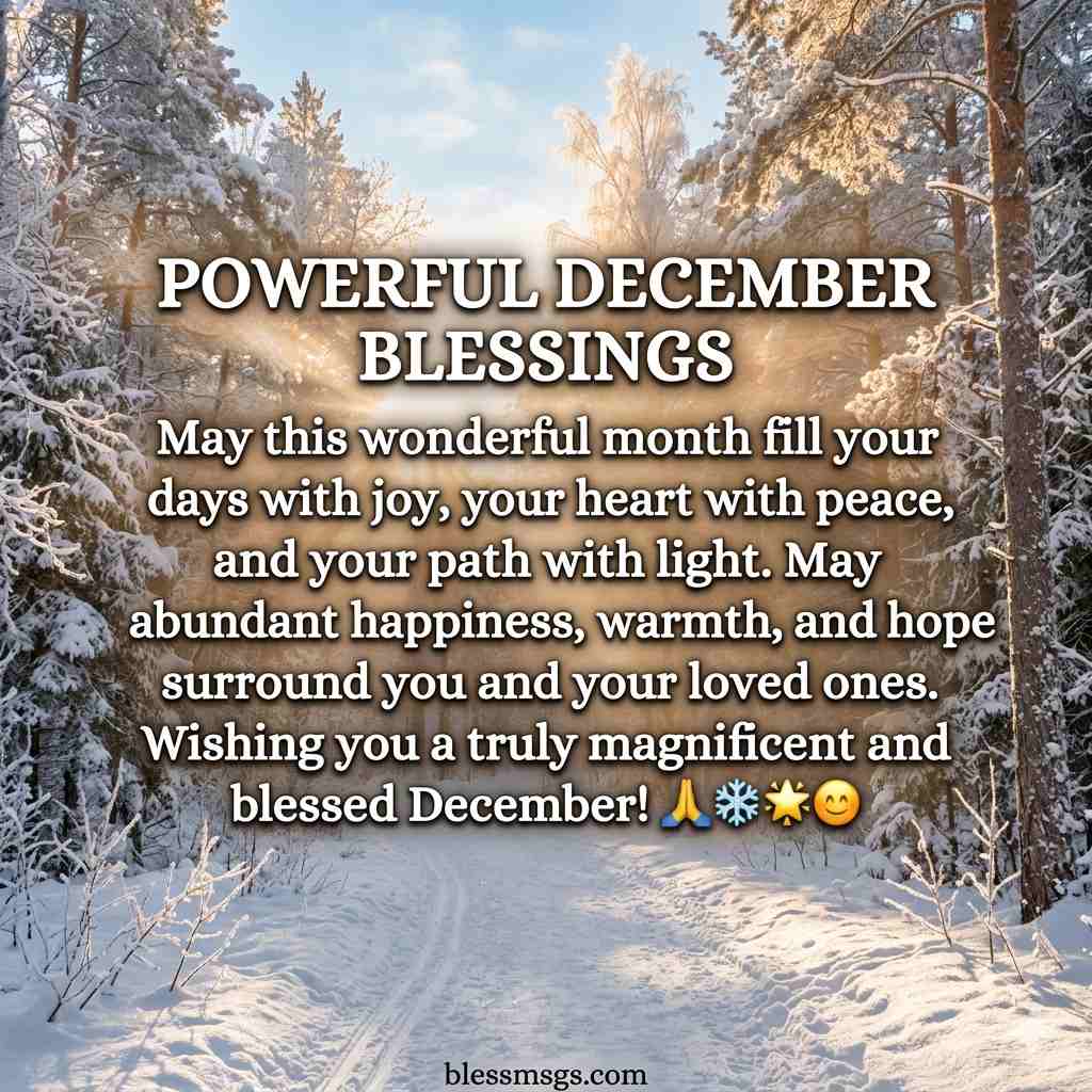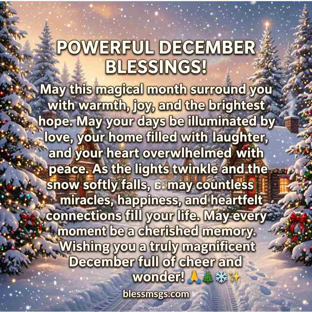December is a month of reflection, joy, and new beginnings. As the year winds down, it’s the perfect time to embrace positivity, gratitude, and peace in our lives. Powerful December blessings help set a bright tone, foster happiness, and bring calm to our hearts amidst the winter chill and holiday buzz. Whether you are looking to inspire yourself, family, friends, or colleagues, these blessings serve as gentle reminders to cherish every moment, spread love, and enter the new year with hope and serenity. Let’s explore these heartwarming blessings that can uplift spirits and make December truly magical.